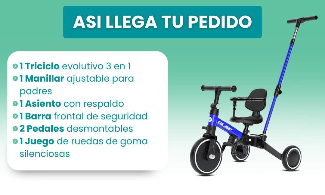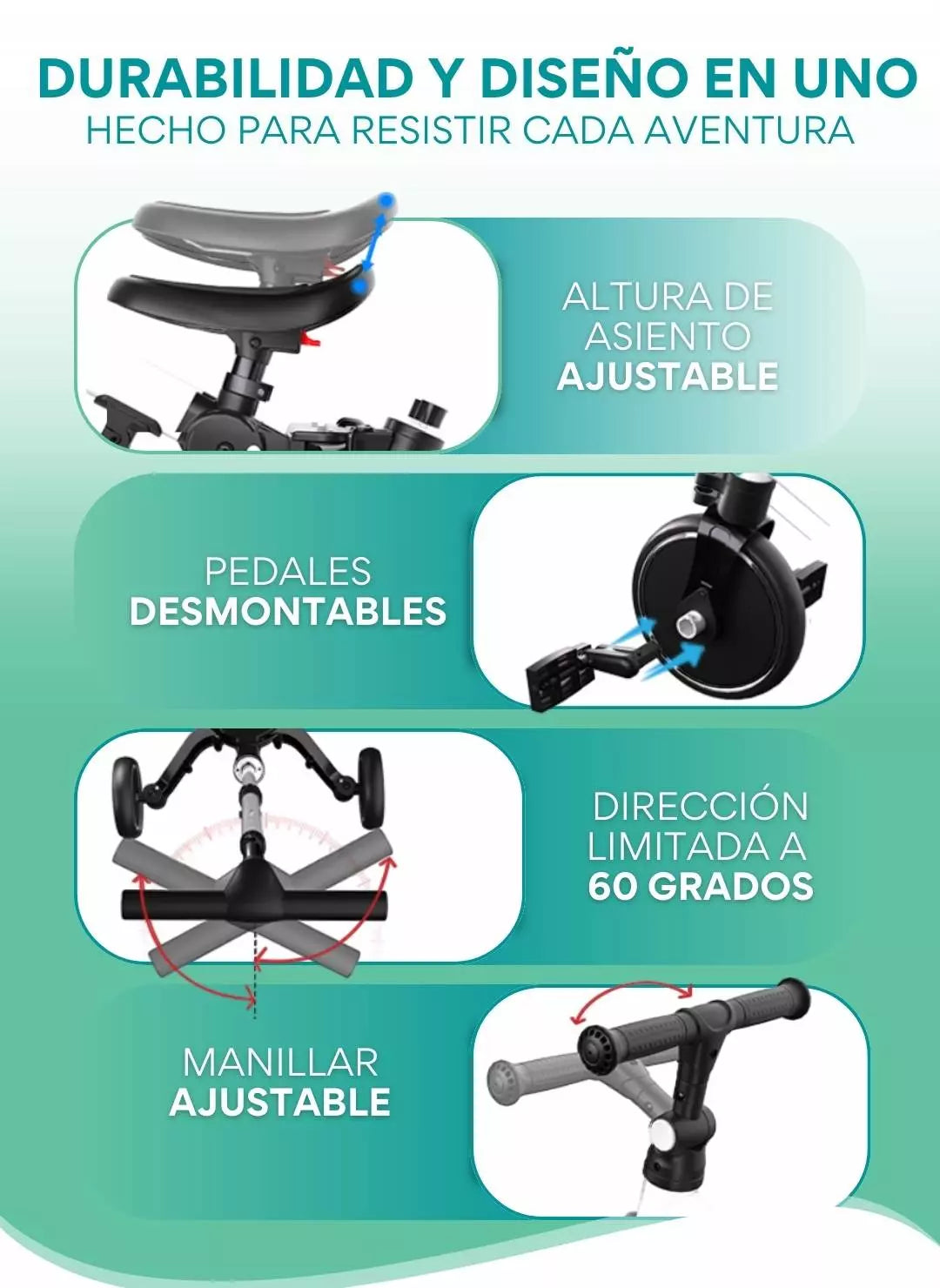 🚲 3 modos de uso en 1 solo triciclo – Ahorra dinero y espacio mientras acompaña cada etapa del crecimiento.