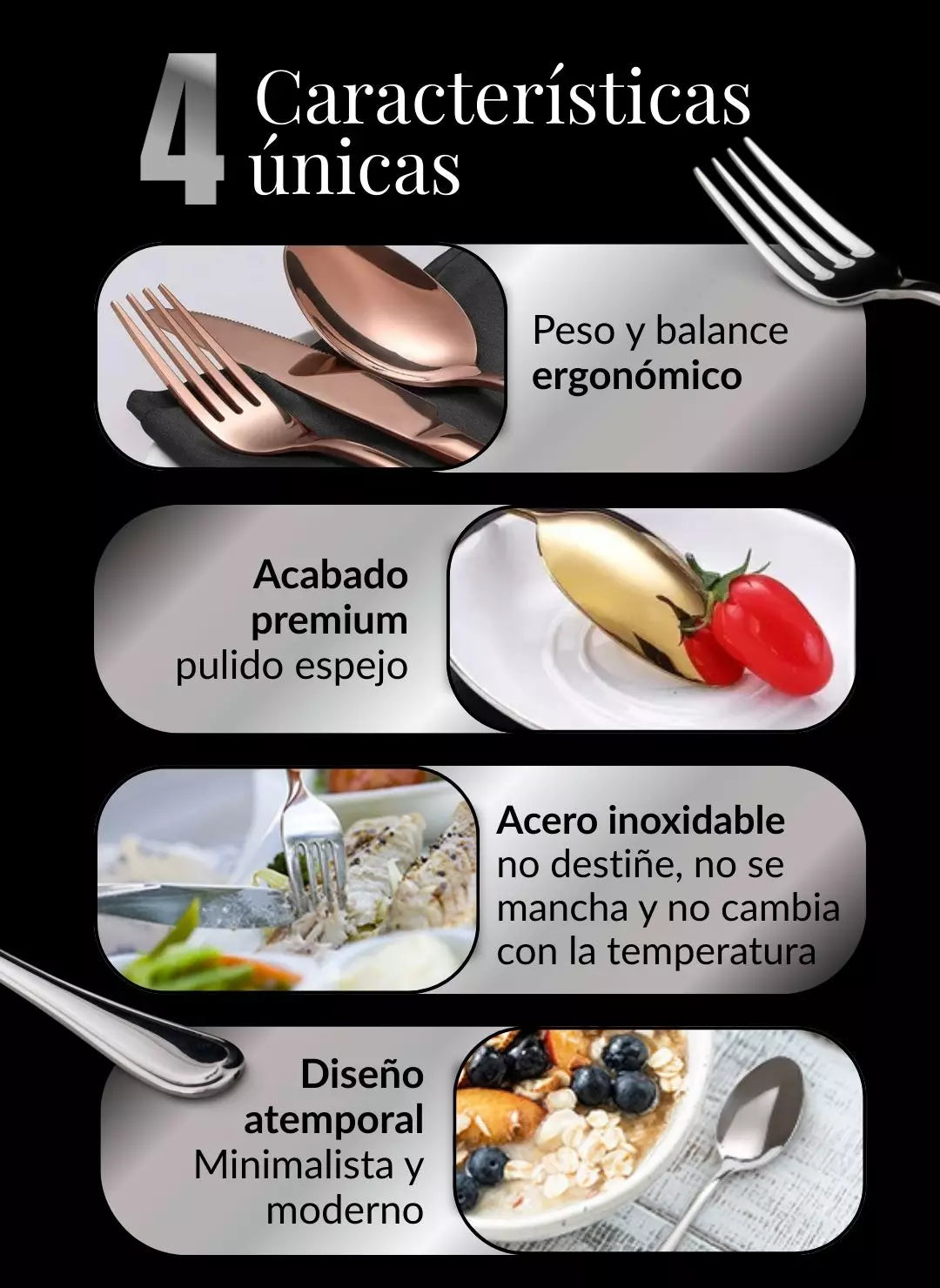 Me encantó este set, los cubiertos son firmes, no se doblan y se ven súper elegantes en la mesa. ¡Tal cual como en las fotos!