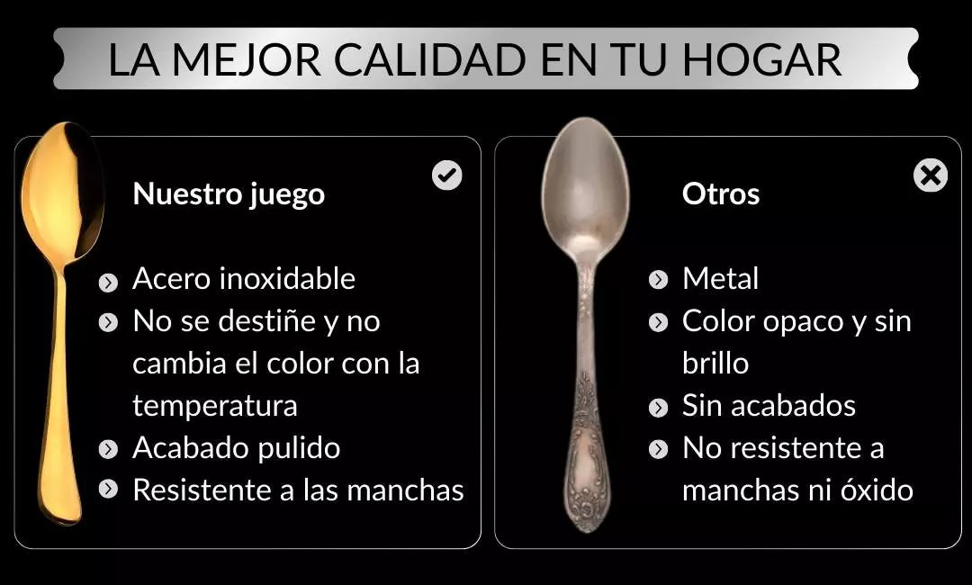 La calidad es excelente, los uso a diario y siguen brillando como nuevos. Muy buena compra, además llegaron rápido
